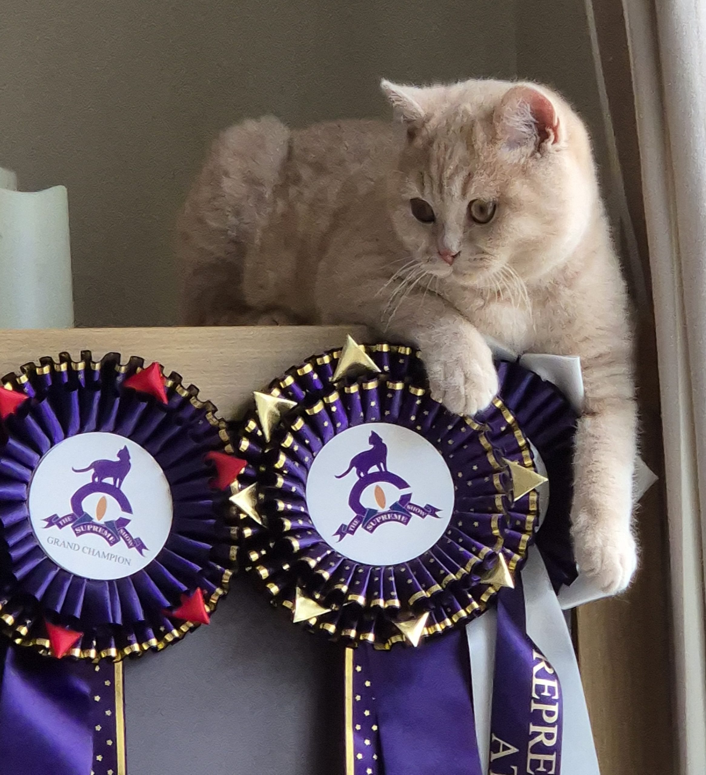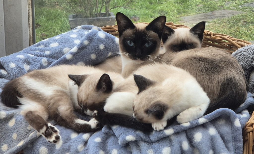 I am very proud of my stud boys – stunning 5th generation Grand Champion Snowshoe Vegas – Overall Best in Show at the Snowshoe show 2024 and 2025. We also have 2025 kittens Gizmo, Heathcliff and Icarus. Not forgetting lilac bi-colour BSH boy Jinx, the son of our fantastic blue British Shorthair Champion show cat Pete!